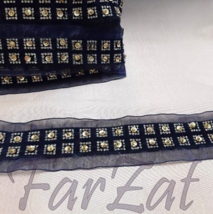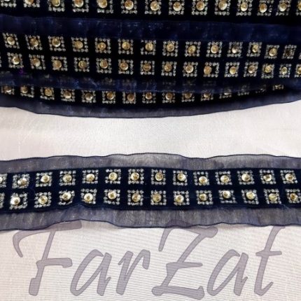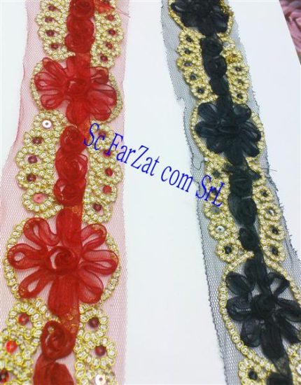 Aplicatie cu paiete (cod 67) realizata din 11 panduri de paiete patrate cusute pe tiul, lata de 45 mm. Aceasta