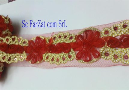 Aplicatie din tiul ( cod  119) lata de cca 5 cm realizata din panglica de organza si snur lame auriu
