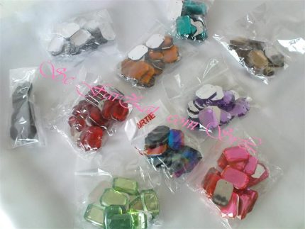 Pietre de cusut din plastic in forma de dreptunghi de 8×10 mm (cod 14) sunt pietre decorative pentru cusut pe