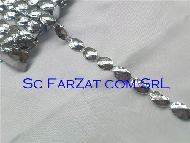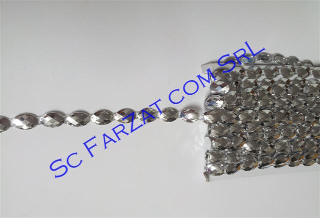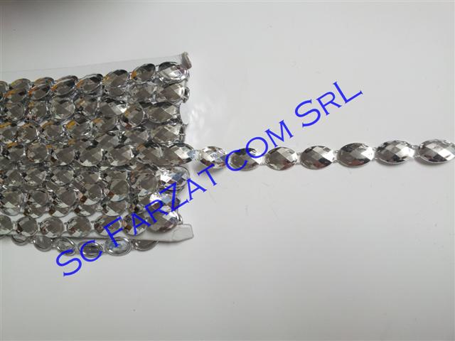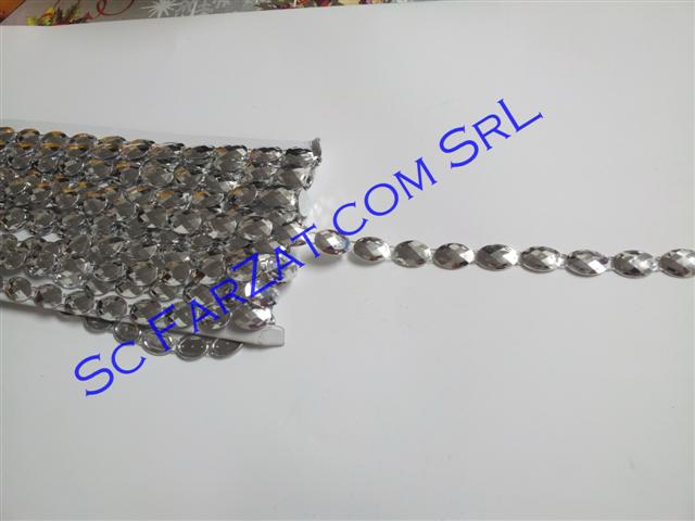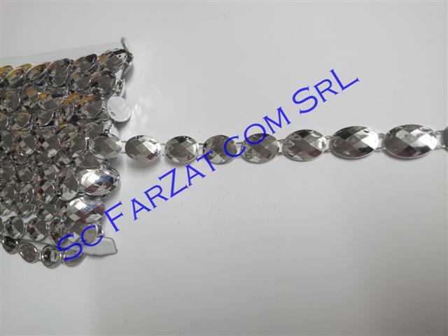 Aplicatie din plastic cod 6 in forma ovala, pe un singur rand de culoare argintie, lata de 12 mm.