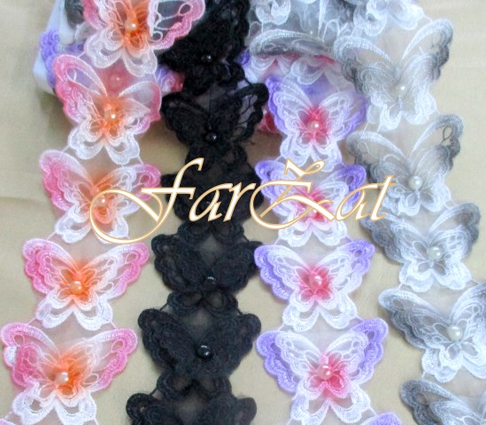 Aplicatie realizata din organza cu fluturi brodati.