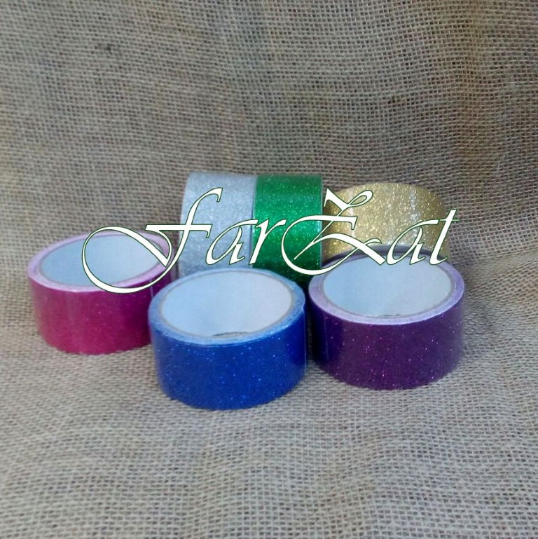 Benzile adezive cu sclipici se pot lipi pe orice tip de material plastic, lemn, sticla, caron etc.