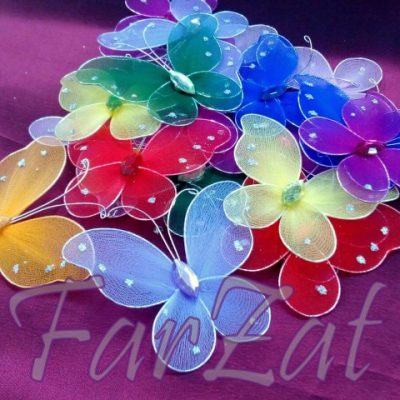Fluturii din tiul se pot utiliza pentru decorarea diverselor aranjamente florale, obiecte etc.