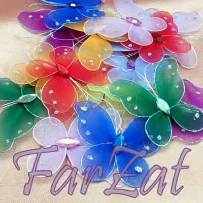Fluturasii decorativi sunt realizati din sarma de modelaj, tiul, sclipici si pietre deorative.