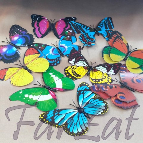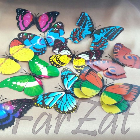 Fluturi decorativi realizati din plastic, multicolori cu sistem de prindere tip magnet sau clema.