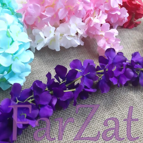 Ghirlanda cu flori realizata din material plastic si textil, ideala pentru diverse aranjamente florale.
