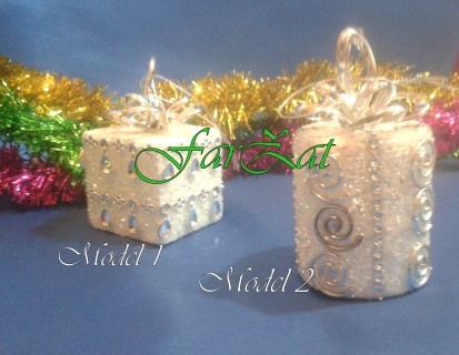 Globuri brad Craciun realizate din polistiren cu sclipici, accesorizate cu diverse ornamente argintii.