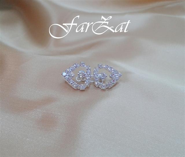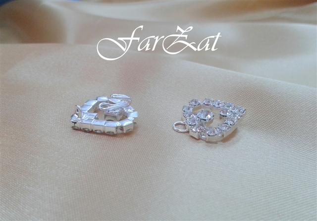Inchizatori brandenburg forma inima, realizati din metal argintiu cu strasuri stralucitoare din pietre acrilice, cu o dimensiune de 35 x 17 mm.
