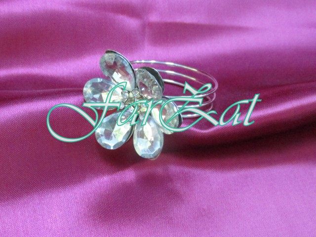 Inelul model floare pentru servetele este realizat din metal arginitiu.