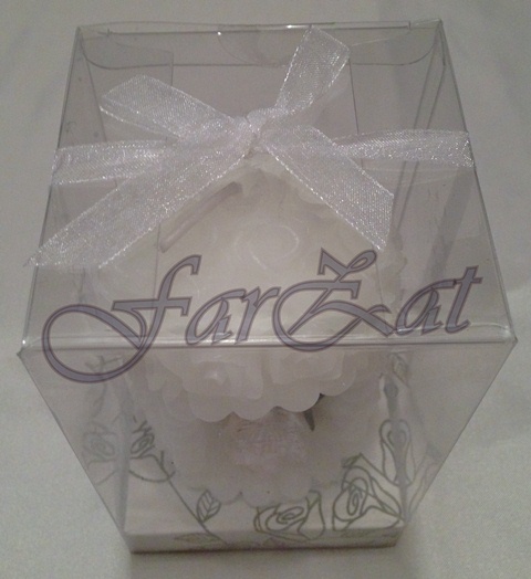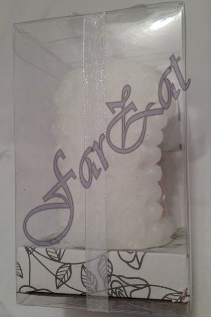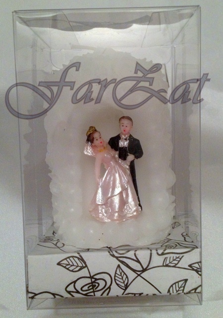Lumanare decorativa miri pentru nunta. Lumanarea este de culoare alb cu nuante de argintiu si sclipici. In centru are inserata o pereche superba de miri foarte bine realizati la detaliu. Dispunem de o gama variata de accesorii pentru nunti si botezuri !