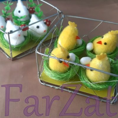 Cosulet cu puisori si iepurasi pentru decoratiuni Paste. Diametrul cosuletului este de cca 4 cm. Produsul il comercializam la set