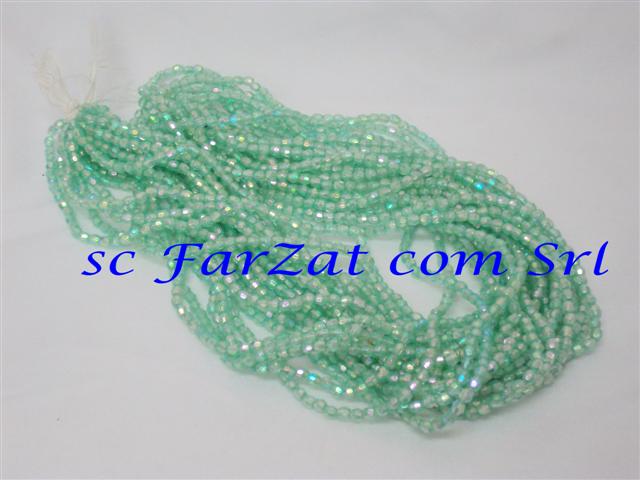 Margele la sirag din plastic cu forma hexagonala de 4 mm, de culoare vernil cu reflexe aurora boreala