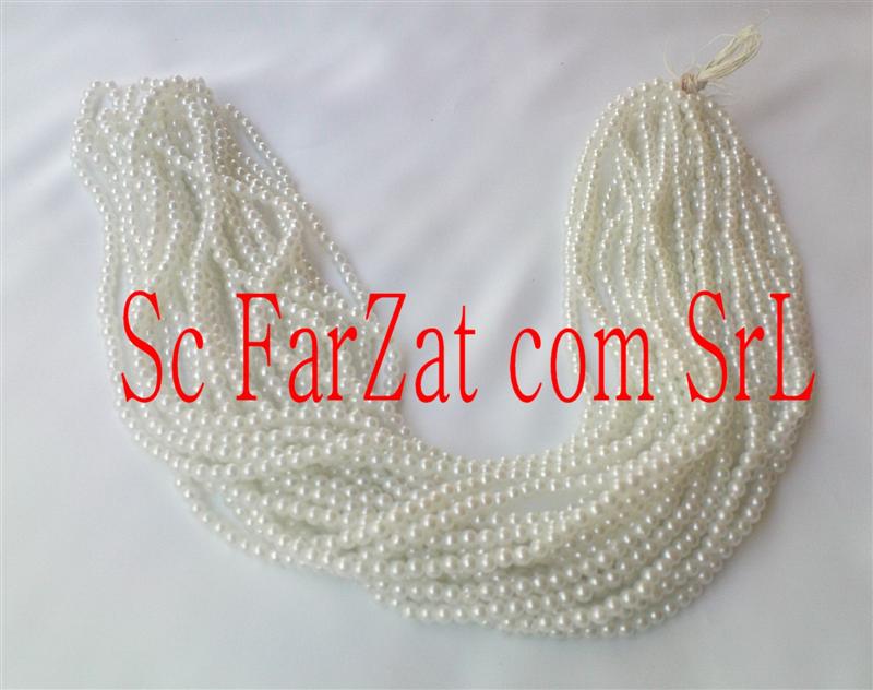 Margele la sirag din plastic cu forma sferica de 5 mm de culoare alb sidefat