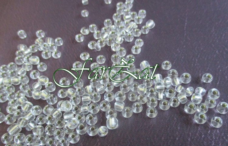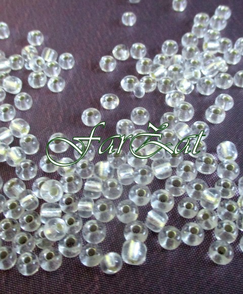 Margele nisip rotunde de 4 mm de culoare de culoare alb transparent cu miez argintiu.