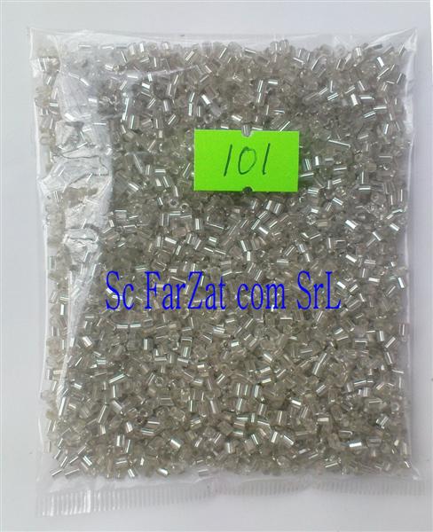 Margele nisip tubulare de 3 mm de culoare argintiu deschis transparent lucios.