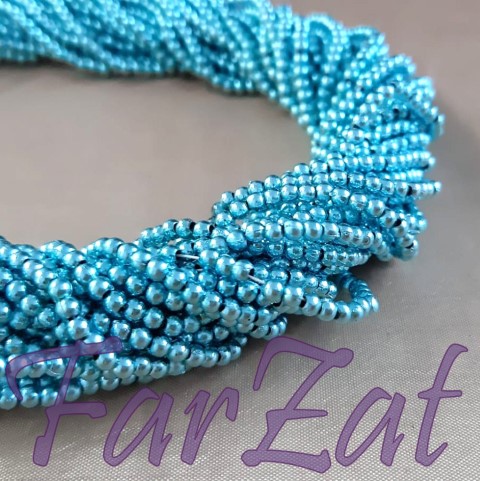 Margele la sirag din plastic cu forma sferica de 3 mm, de culoare turcoaz metalic