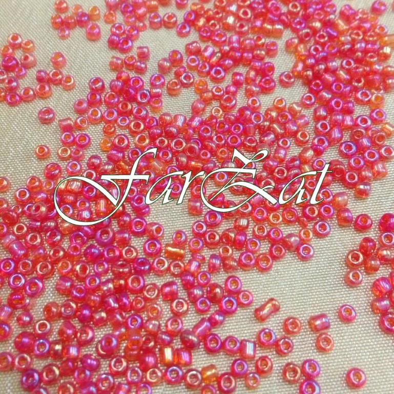 Margele nisip rotunde de 2 mm de culoare cameleon rosu spre portocaliu.