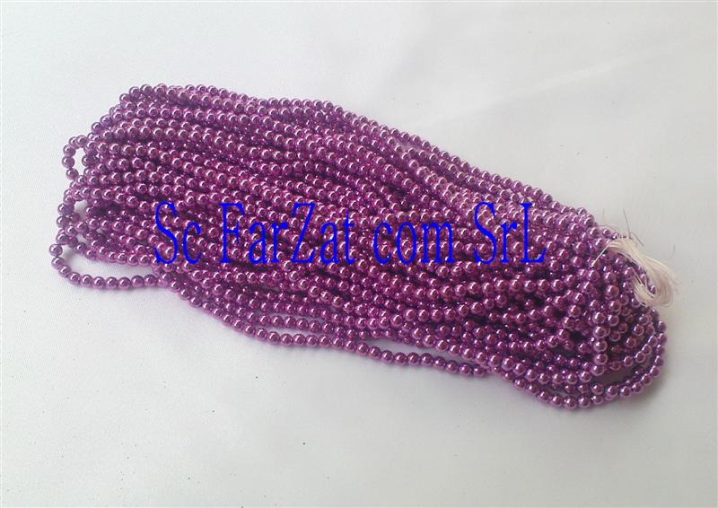 Margele la sirag din plastic cu forma sferica de 5 mm de culoare ciclam metalic
