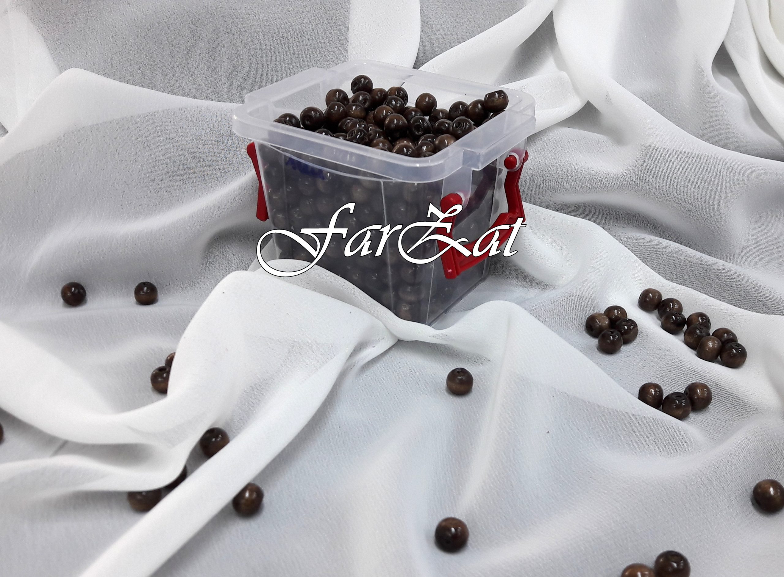 Pretul afisat este pentru o cutie cu peste 200 margele din lemn.