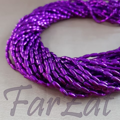 Margele la sirag de 6x3mm din plastic forma bob orez,de culoare mov la sirag (12 siraguri), disponibile in game foarte variate de culori.