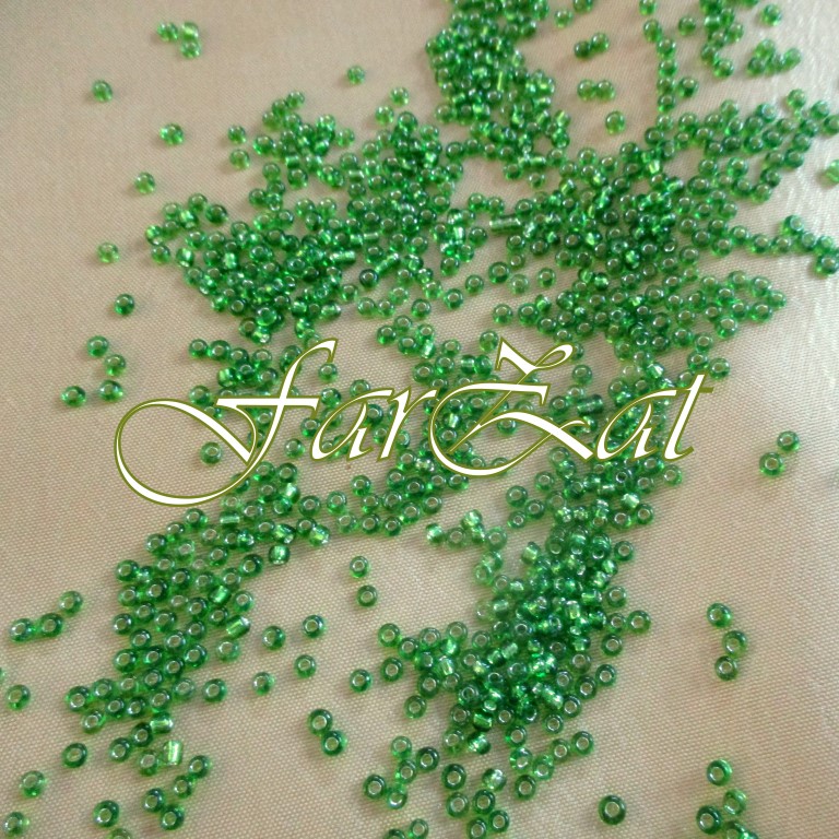 Margele nisip de 2 mm de culoare verde cu miez argintiu.