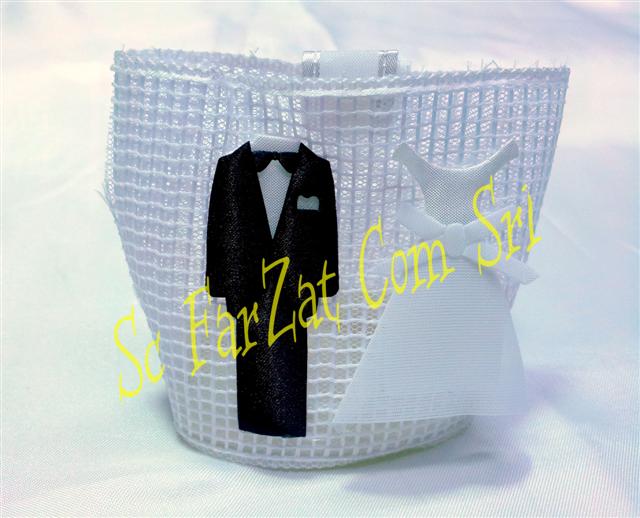 Marturie nunta gentuta alba ornata cu imitatie de rochie de mireasa si costum de ginere reprezinta un cadou elegant si sofisticat, precum si o amintire a fericitului eveniment la care s-a participat.