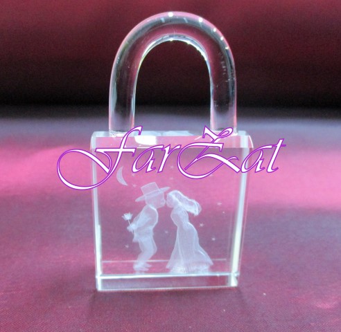Marturie sub forma de lacat realizata din semicristal transparent.