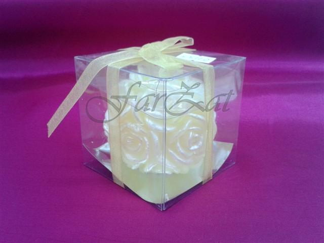 Lumanare sculptata model buchet de trandafiri pentru marturii nunta sau botez.