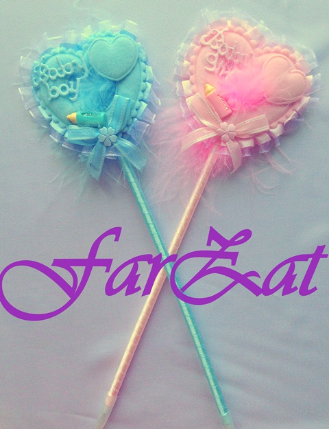 Pixurile au au lungimea de 30 cm, sunt decorate cu organza si puf. Au inscriptiile: „Baby Boy” si „Baby Girl”