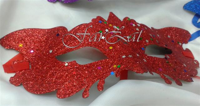 Masca de carnaval pentru ochi ornamentata pe toata suprafata cu sclipici colorat, este confectionata dintr-un plastic rezistent care nu permite deteriorarea rapida. Aceasta masca se potriveste perfect cu forma fetei si este prevazuta cu doua panglici din saten pentru o prindere usoara.