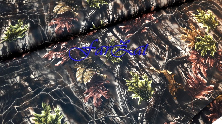 Camuflajul impermeabil pentru huse cu model frunze de toamna este realizat din poliester cu membrana de poliuretan si are 300 gr / ml.