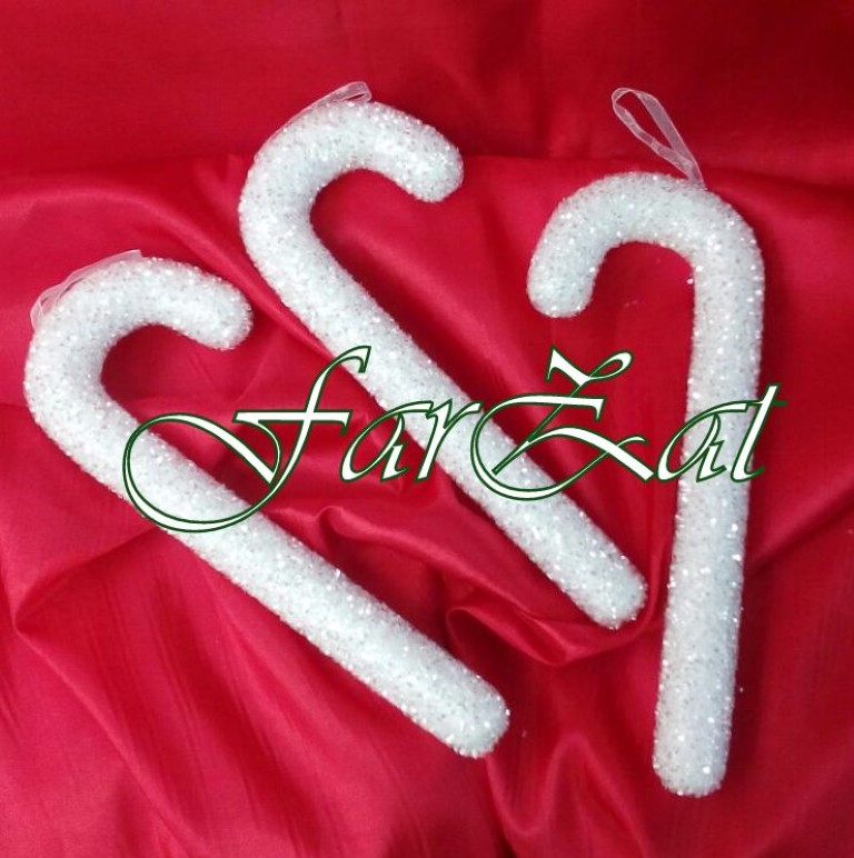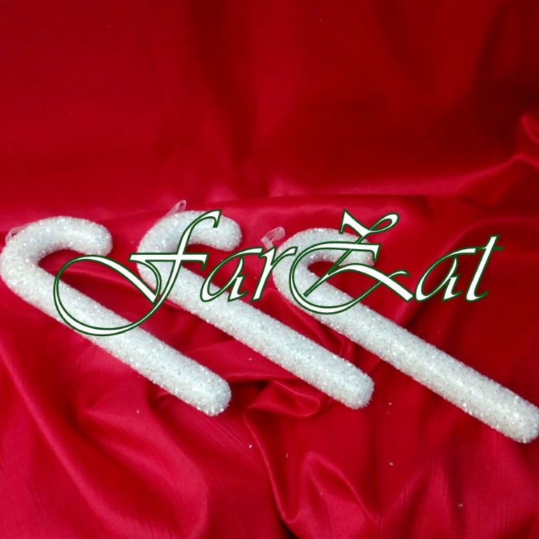 Bastonasul decorativ este realizat din polistiren alb, decorat cu mici stelute sclipitoare.
