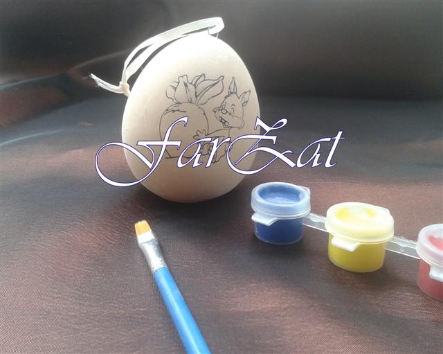 Oul dispune de un snur pentru a fi agatat dupa ce este pictat.