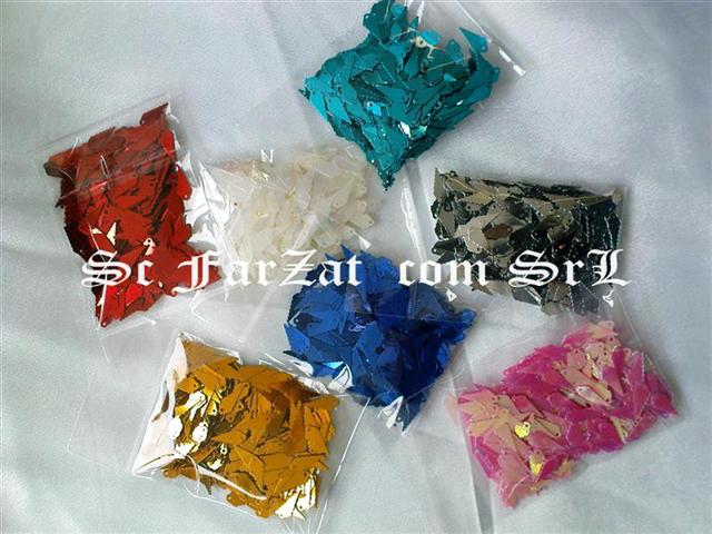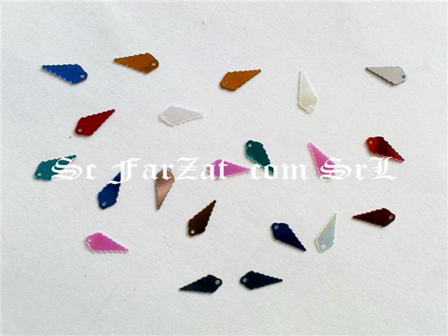 Paiete in forma de braduti cu singura gaura de prindere pe margine, paietele se aplica manual.