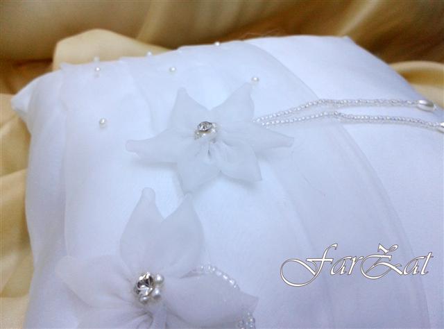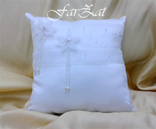 Pernuta pentru verighete are forma patrata, este imbracata in saten alb si are o dimensiune de cca 20 centimetri.