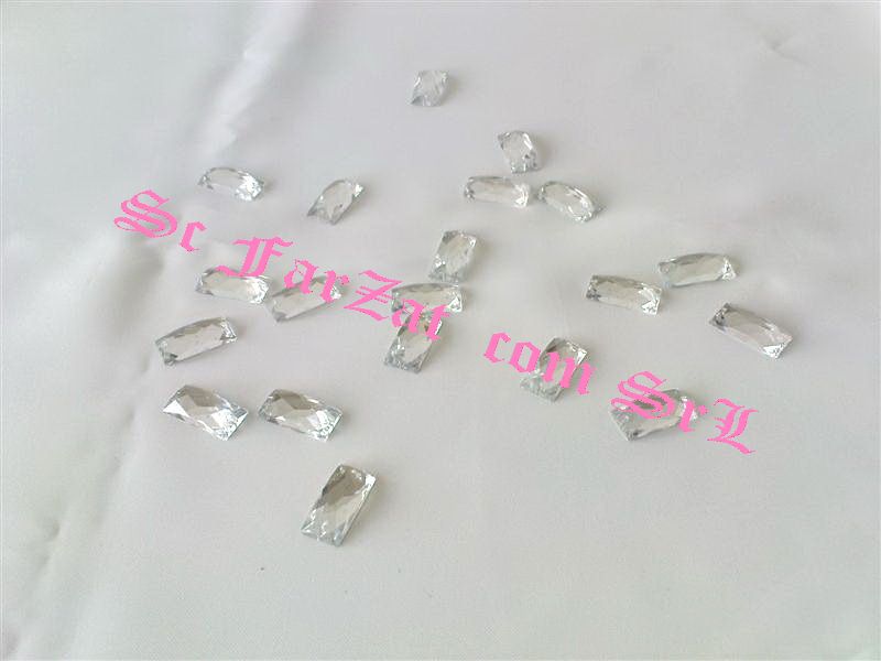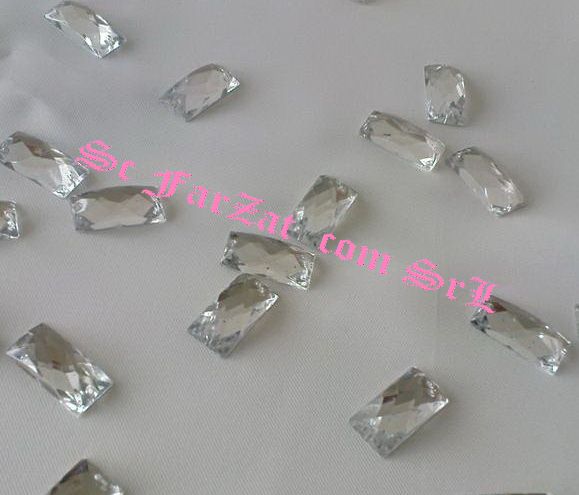 Pietre de cusut din acrylic in forma de dreptunghi de 20×10 mm, (cod 112), sunt pietre decorative pentru cusut pe orice tip de tesatura.