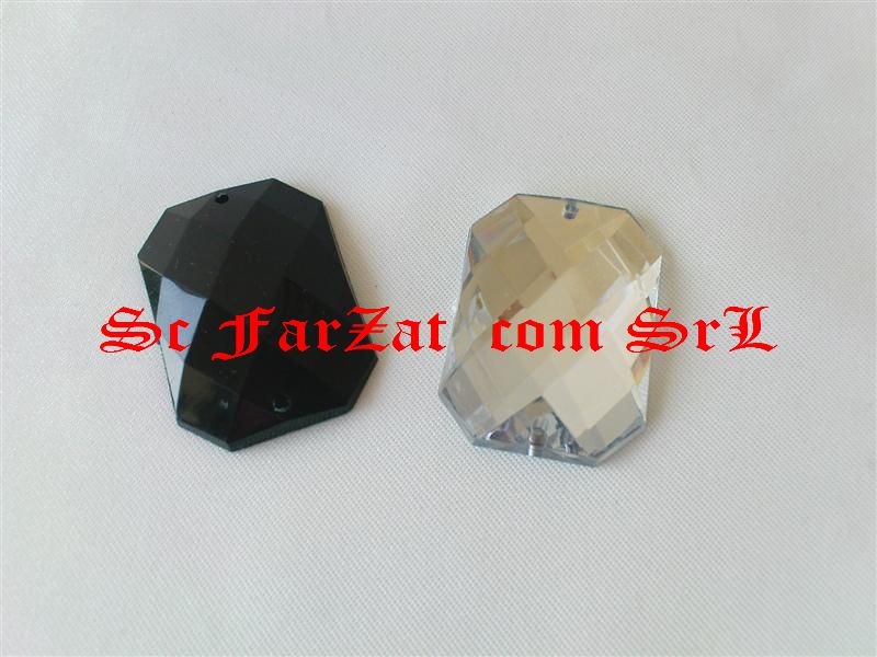 Pietre de cusut din acrylic in forma de dreptunghi de 25×35 mm (cod 102) sunt pietre decorative pentru cusut pe orice tip de tesaturi sau piele prin cele doua gauri laterale, sunt ideale pentru personalizarea obiectelor vestimentare, cele de gala si sport. Materialul din care sunt fabricate este din acrylic, ceea ce le confera o stralucire aparte prin fatetele lor care reflecta razele luminoase in mod placut.
