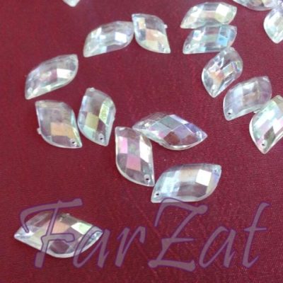 Pietre de cusut din acrilic in forma de romb de 13 x 16 mm (cod 66) sunt pietre decorative pentru cusut pe orice tip de tesaturi sau piele prin cele doua gauri laterale. Materialul din care sunt fabricate este din acril, ceea ce le confera o stralucire aparte prin fatetele lor care reflecta razele luminoase intr-un mod placut.