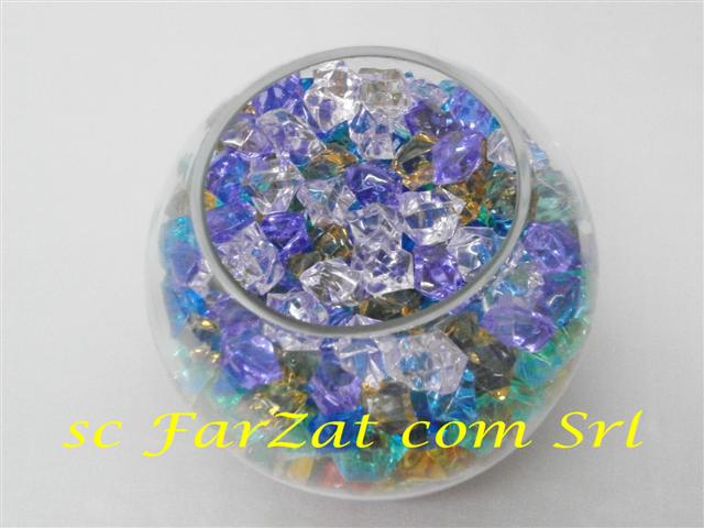 Pietre decorative lila din plastic transparent se folosesc pentru infrumusetarea meselor festive sau decorarea vazelor transparente si multe alte scopuri ce vor permite designer-ului sa dea frau liber imaginatiei si sa foloseasca tot felul de trucuri decorative.