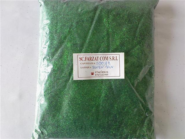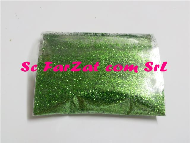 Praf sclipici (glitter) verde este un praf fin care se intrebuinteaza pentru a da un aspect placut obiectelor decorative