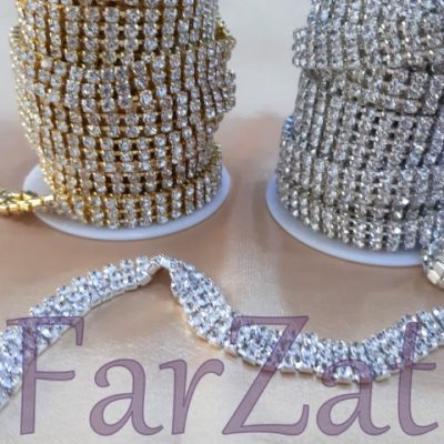 COD-FLOBanda este alcatuita din 3 siraguri cu strasuri.Latime: 1 cmDiametru stras: cca 3 mmCuloare stras: alb cristalCuloare motura: auriu, argintiuPretul afisat este pentru un metru de banda cu strasuri.Produse similare:Strasuri la sirag