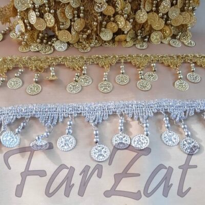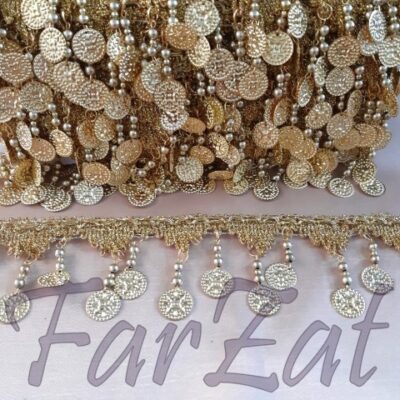 Terminatie din organza cu paiete lata de 5 cm formata din doua parti prima de sus este o banda lata de cca 13 mm ornata cu paiete iar partea de jos este din organza plisata cutata lata de 37 mm. Se poate coase pe orice tip de tesatura si este ideala pentru personalizarea obiectelor vestimentare.