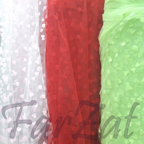 Material textil tiul cu inimioare, ideal pentru articole vestimentare, decoratiuni.