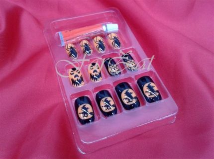 Unghii false pentru petrecerea de halloween disponibile la set de 12 bucati. Unghiile au 3 dimensiuni, 4 modele si le