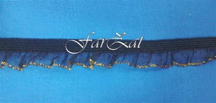 Organza pe elastic de culoare neagra cu fir auriu. Organza are o latime de 0,9 cm iar elasticul 0,6 cm.