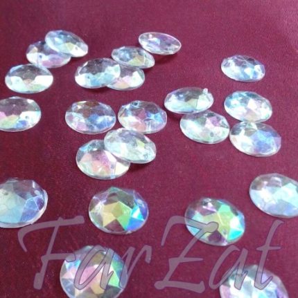 Pietre de cusut forma ovala de 18 x 25 mm de culoare transparent cu reflexii aurora boreala Pietrele de cusut
