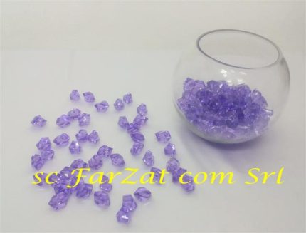 Pietre decorative lila din plastic transparent se folosesc pentru infrumusetarea meselor festive sau decorarea vazelor transparente si multe alte scopuri